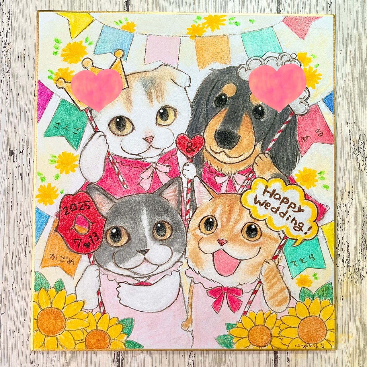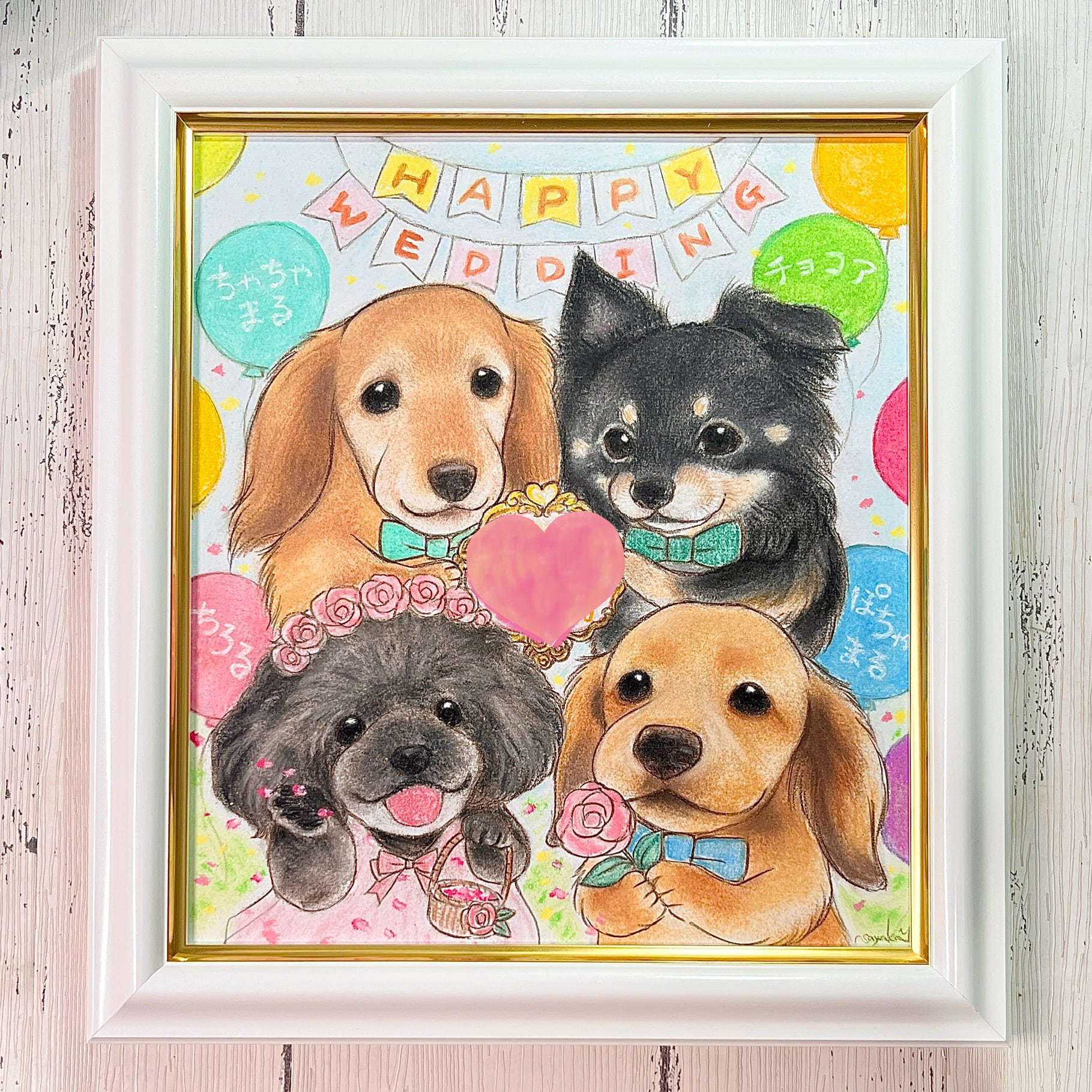 ウエディング用の色紙似顔絵、額装込みの商品になります。